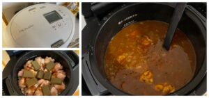 という訳でちょっとご紹介。チキンと野菜の無水カレーなるものを作ってみました。 仕事日の朝、材料をきってポポポイとホットクックへ投入。予約調理で夕飯の時間にセット。 そうするとじわじわと調理を始めるので火が入った状態になり暑い日でも予約調理が可能なんですね。